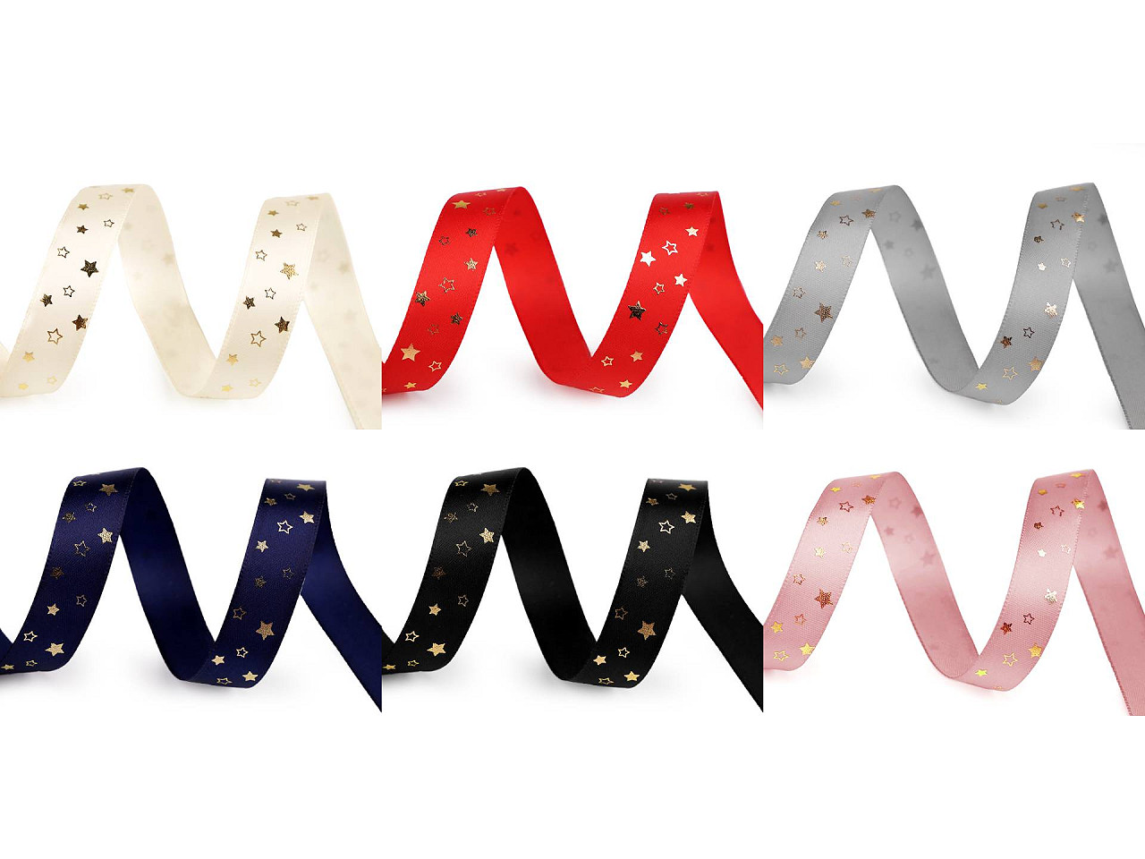 Dekoračná saténová stuha s potlačou hviezdičiek je veľmi pútavá. Potlač je jednostranná, metalická , pripomína lurex. Použitie: Stuha sa bude skvele vynímať pri vianočných dekoráciách. Môžete ju tiež naaranžovať na vence a ikebany, ktorým dodá punc elegancie. Vkusne s ňou zabalíte aj darčeky. Hodí sa na nalepenie na priania, albumy, denníky a pod. v technike scrapbooking.