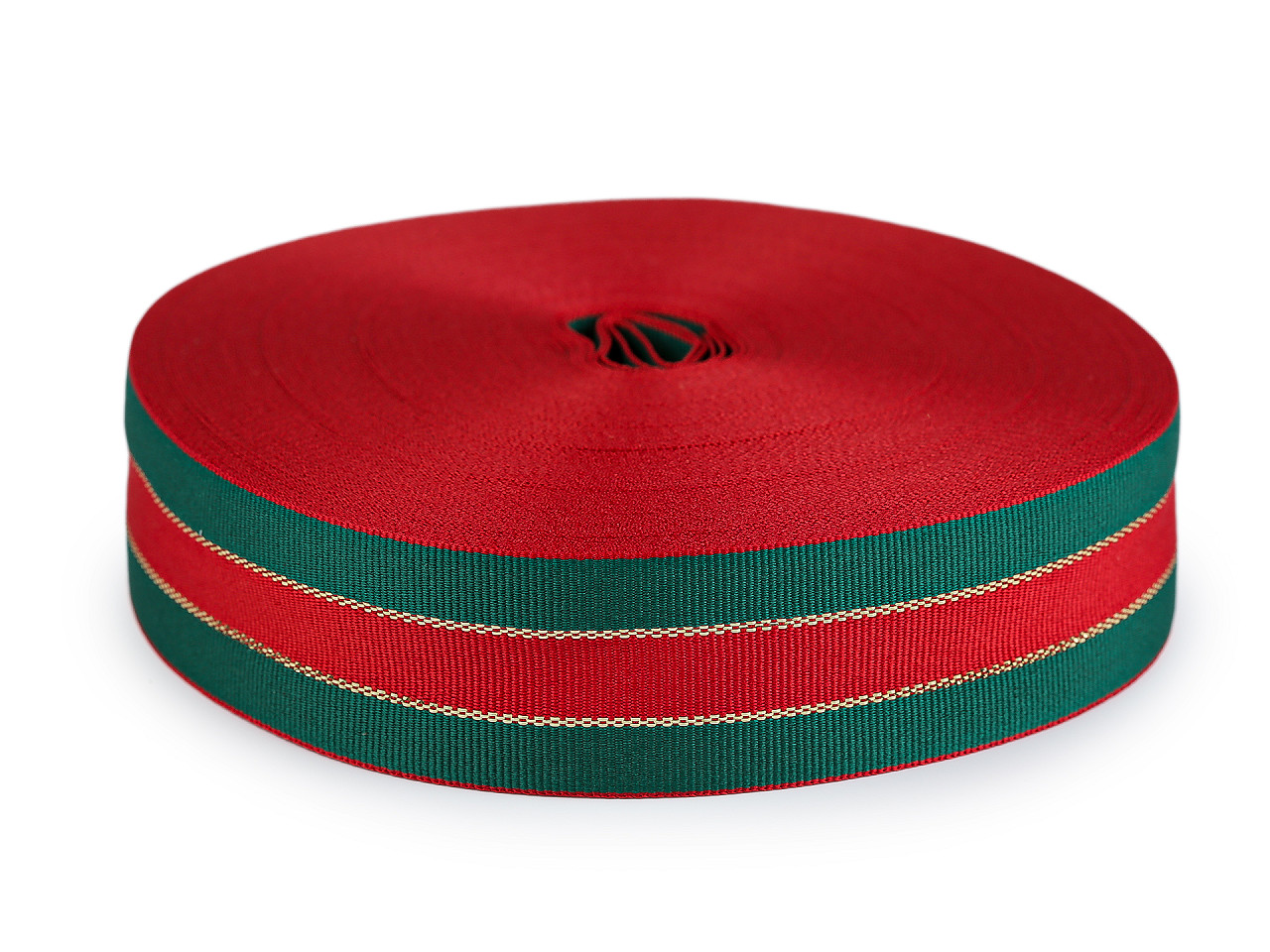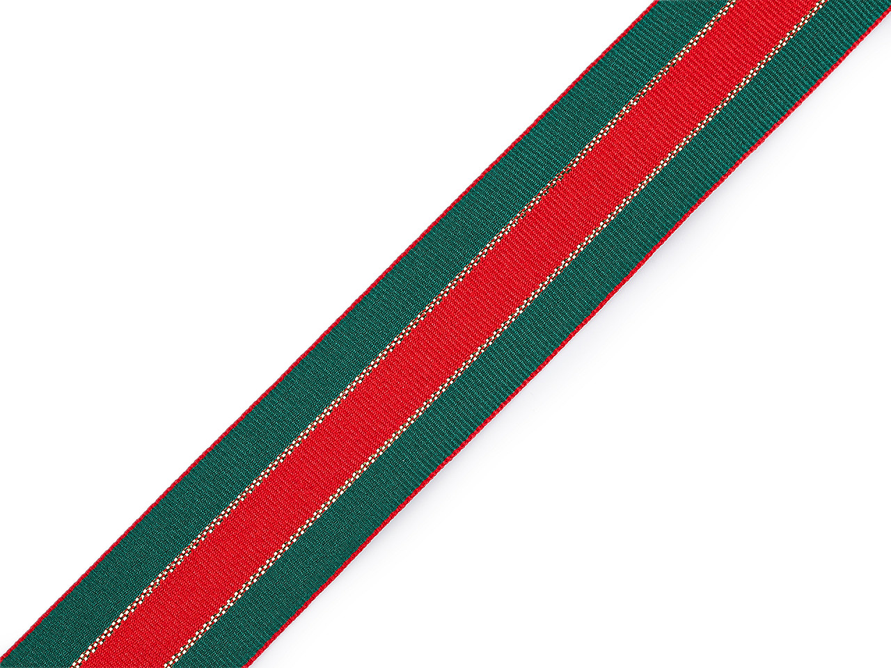 Vianočná stuha so zlatým lurexom je obojstranná, mäkká, ale pritom dostatočne tuhá. Použitie: Stuhu môžete použiť na aranžovanie vencov či iných dekorácií alebo s ňou originálne zabaliť darčeky. Uviazané mašle z tejto stuhy pekne držia tvar.