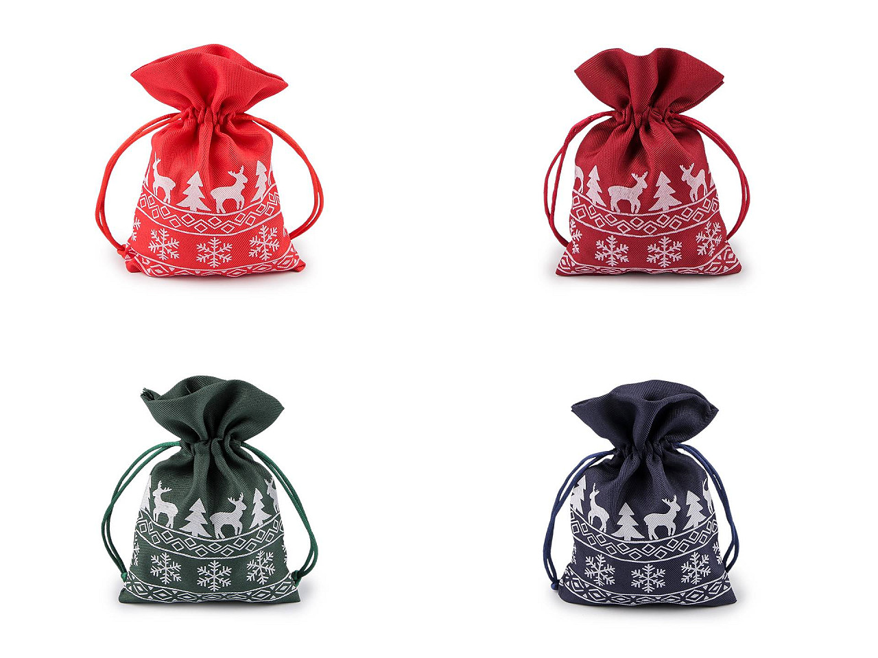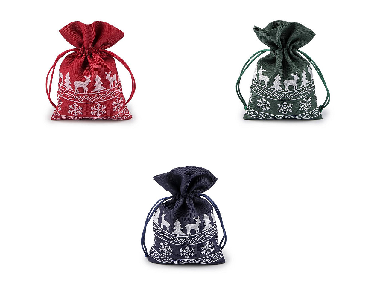 Vianočné darčekové vrecúško je z oboch strán ozdobené potlačou sobov, stromčekov a vločiek . Môžete ho použiť na darčeky alebo ho naplniť mikulášskou nádielkou, ušetrí vám čas pri balení. Dá sa naaranžovať aj ako vianočná dekorácia. Sťahuje sa pomocou okrúhlych saténových šnúriek, darčeku dodá osobné kúzlo a pôvab.