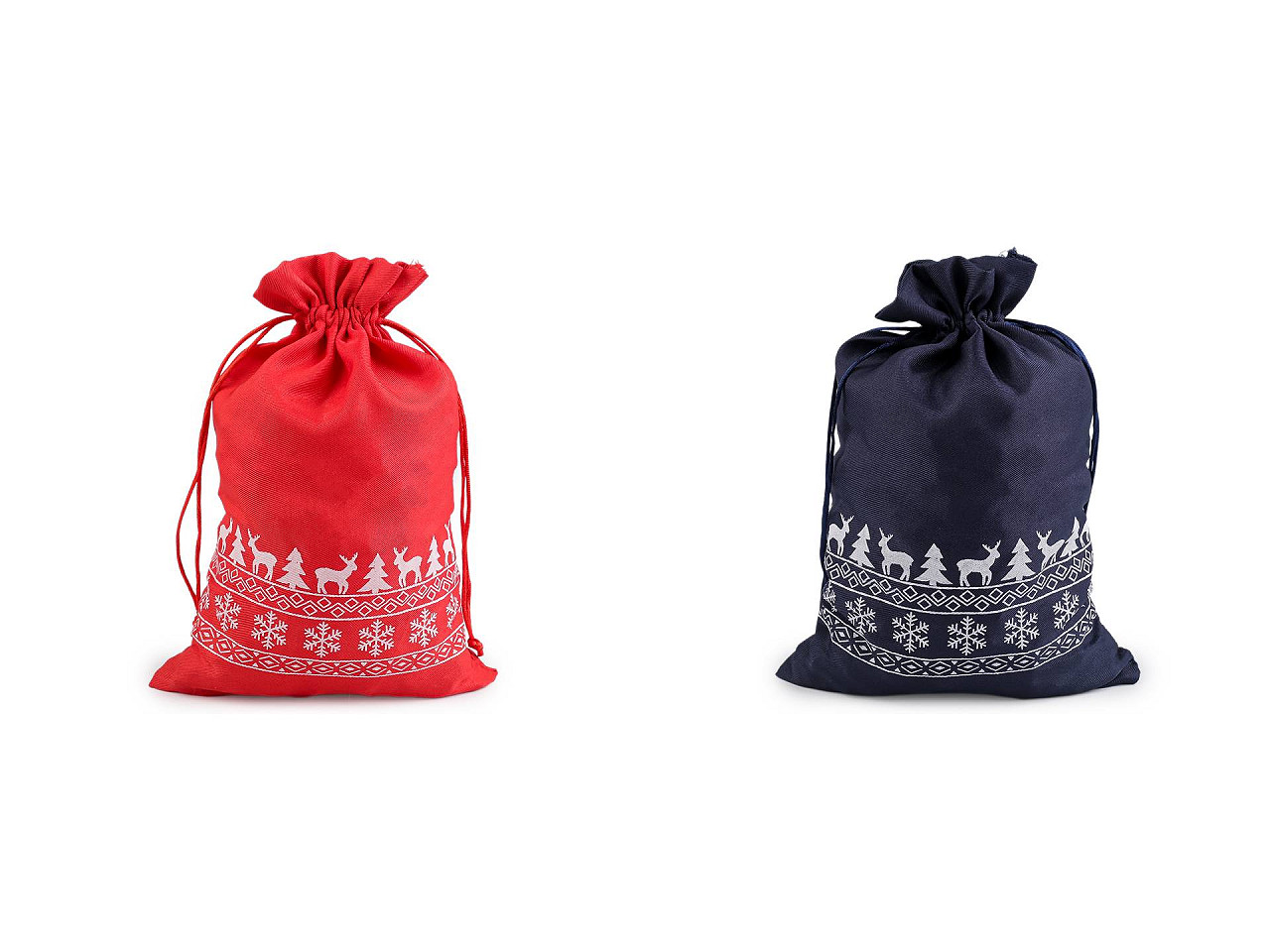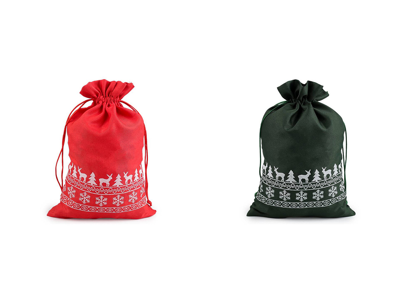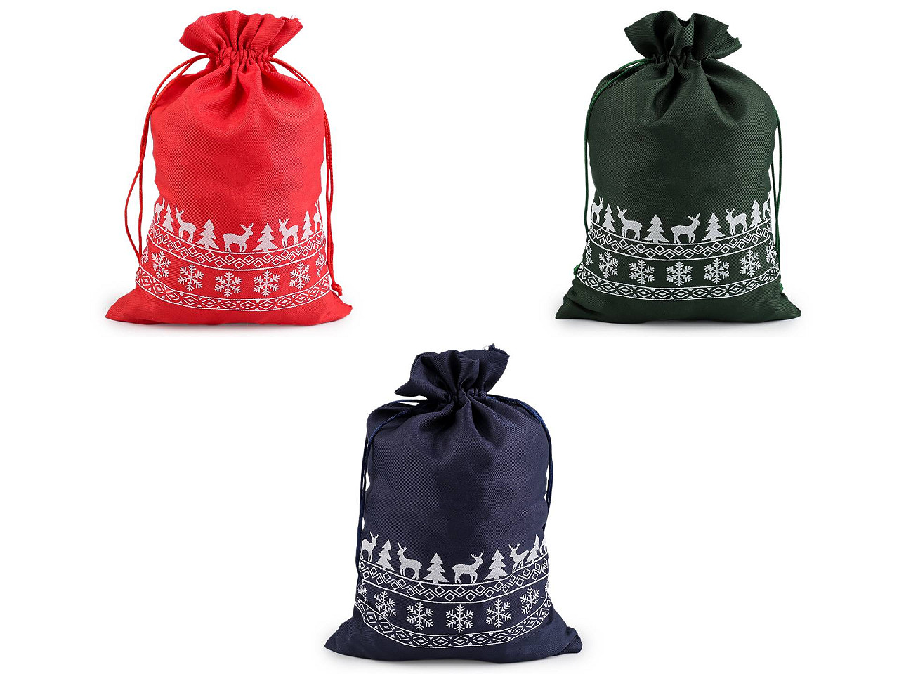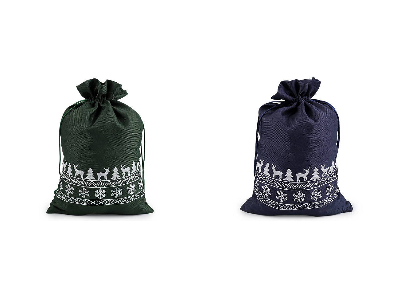 Vianočné darčekové vrecúško je z oboch strán ozdobené potlačou sobov, stromčekov a vločiek . Môžete ho použiť na darčeky alebo ho naplniť mikulášskou nádielkou, ušetrí vám čas pri balení. Dá sa naaranžovať aj ako vianočná dekorácia. Sťahuje sa pomocou okrúhlych saténových šnúriek, darčeku dodá osobné kúzlo a pôvab.