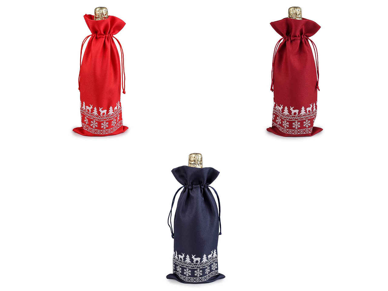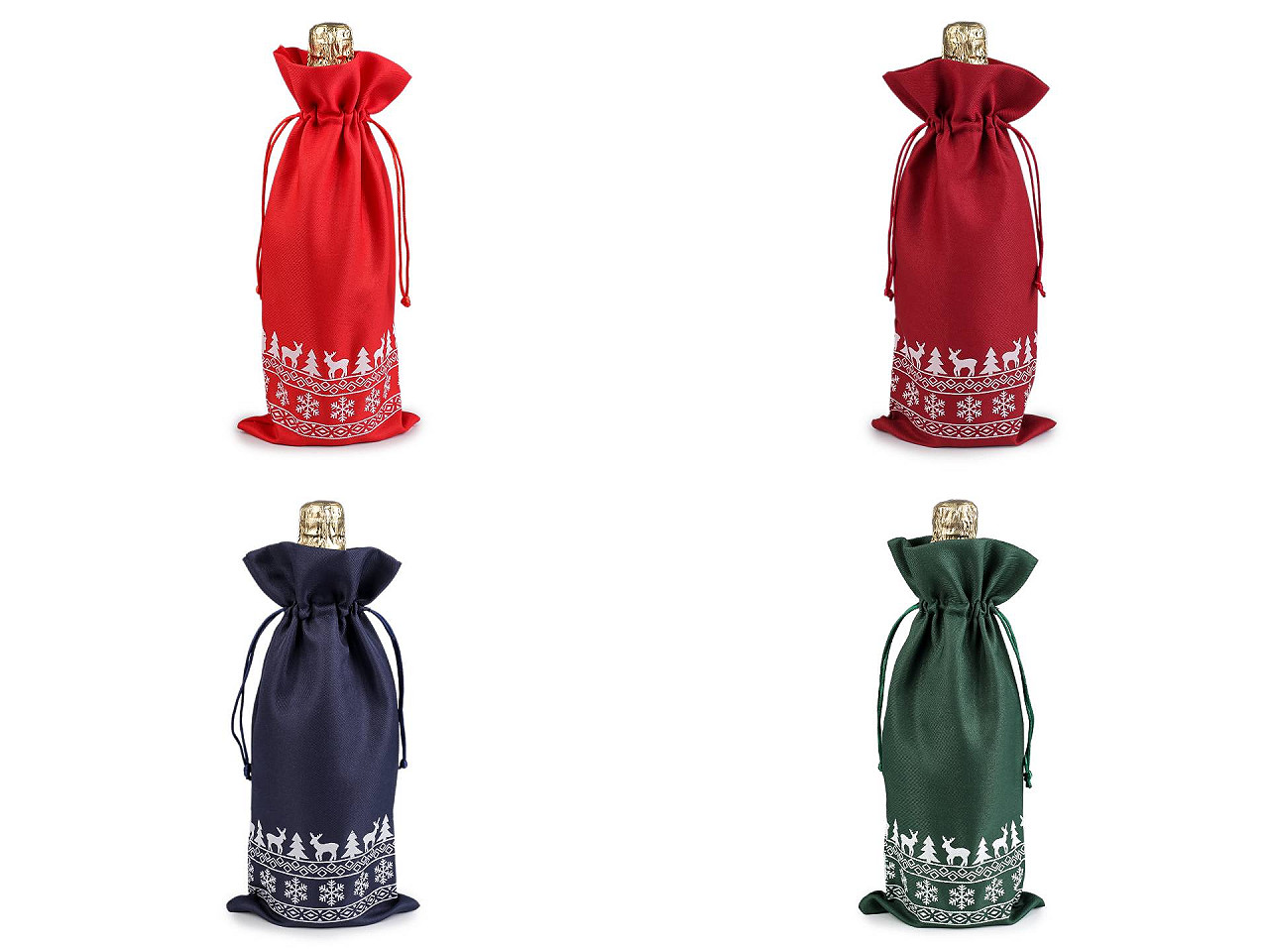 Vianočné darčekové vrecúško je z oboch strán ozdobené potlačou sobov, stromčekov a vločiek . Je určené na zabalenie fliaš a iných podlhovastých darčekov . Vrecko je dostatočne vysoké, či už sa rozhodnete pre darček s alkoholom alebo s domácou limonádou, ušetrí vám čas pri balení. Sťahuje sa pomocou okrúhlych saténových šnúriek, darčeku dodá osobné kúzlo a pôvab. Fľaša nie je súčasťou vrecka.
