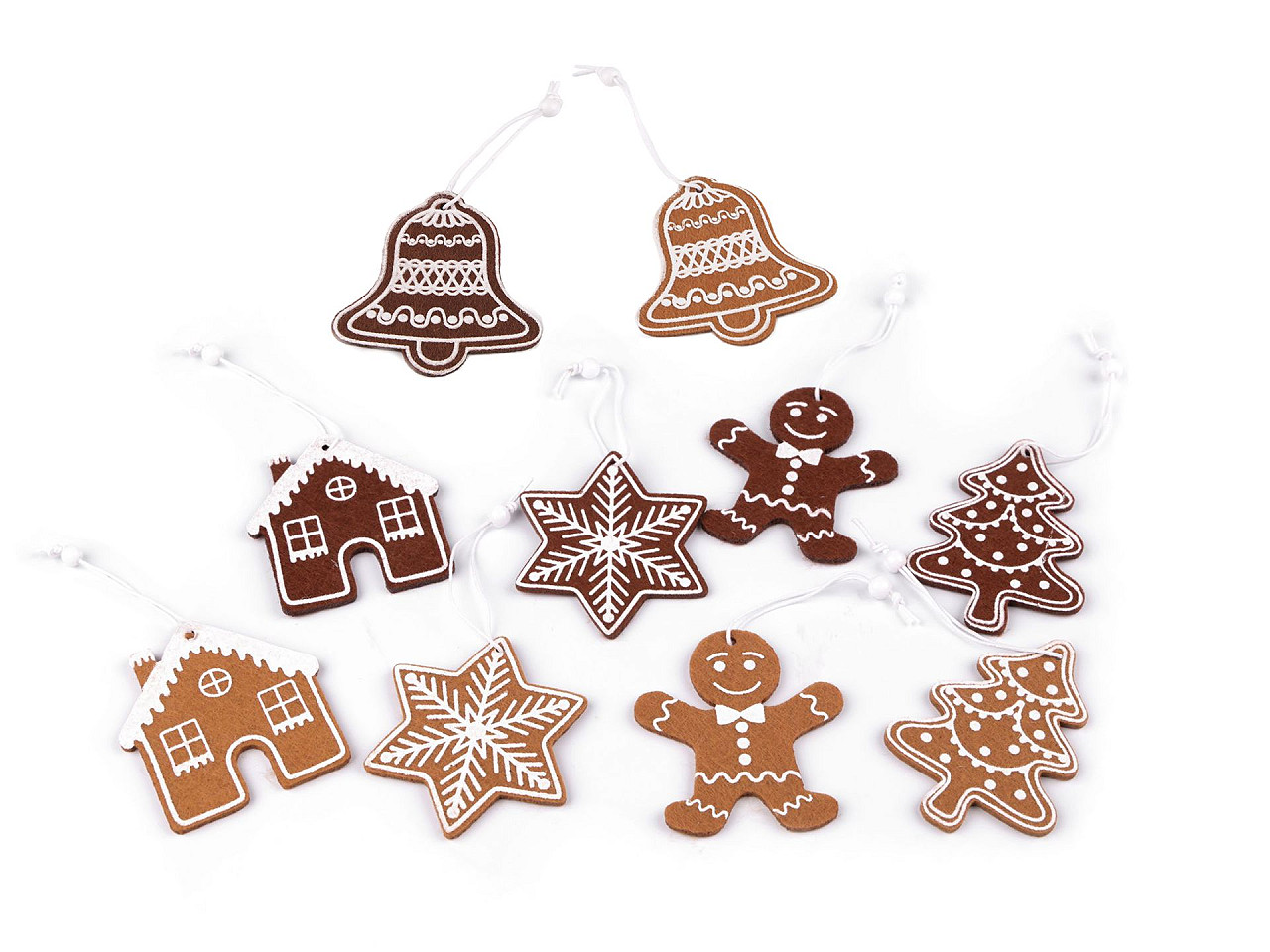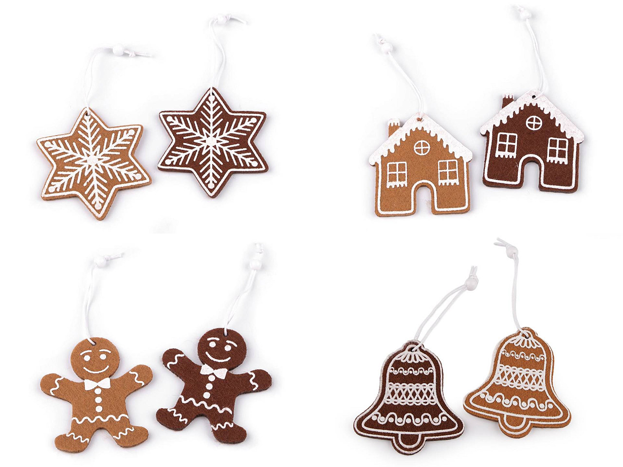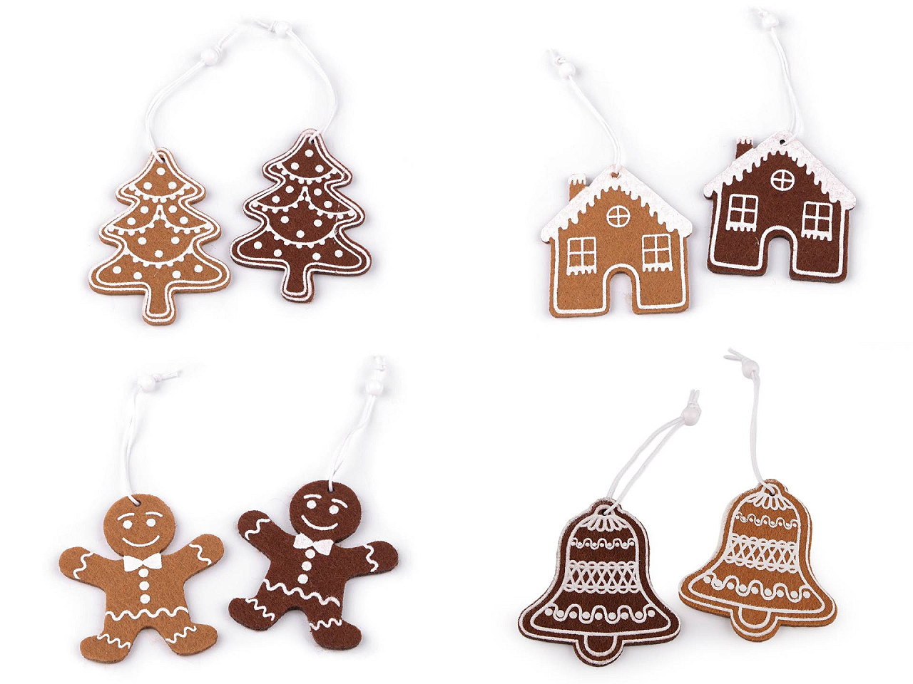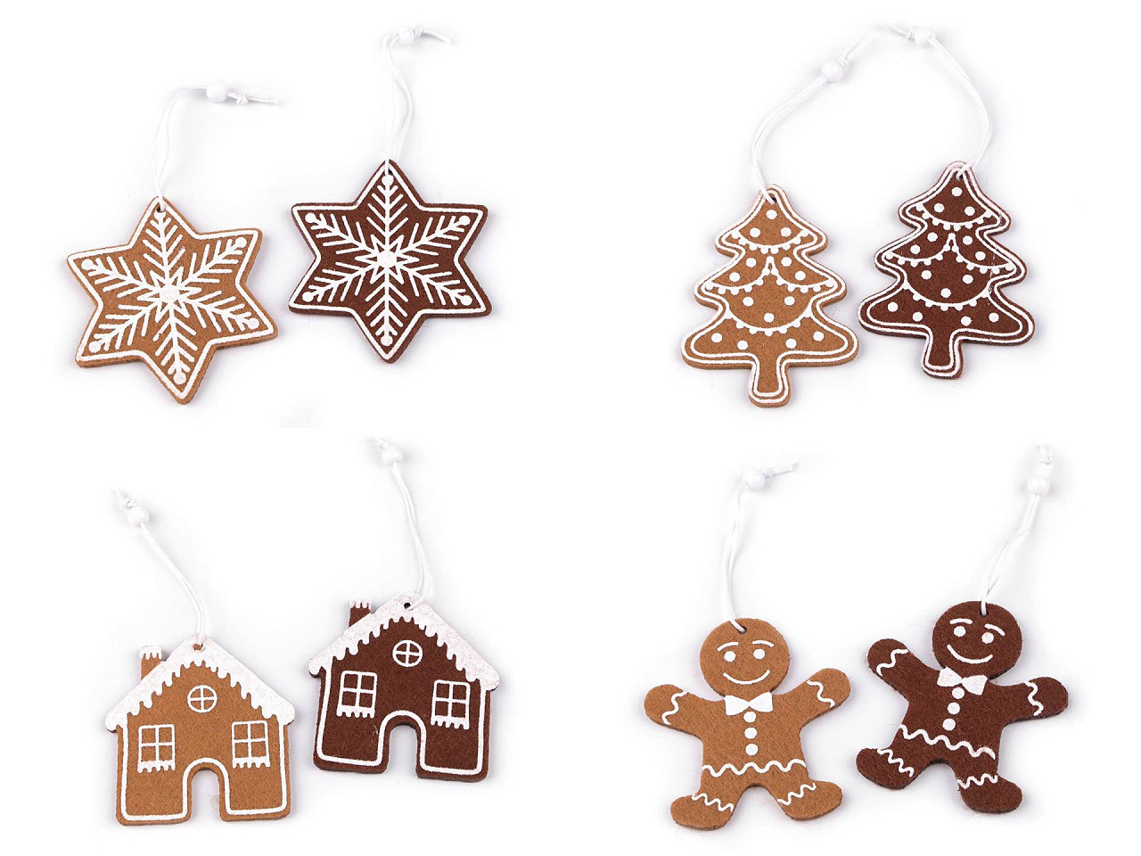 Filcové perníčky sa hodia na ozdobenie vencov, stromčeka, vetvičiek vo váze a pod. Majú pôsobivo spracovanú potlač polevy. Perníčky sú jednostranné.