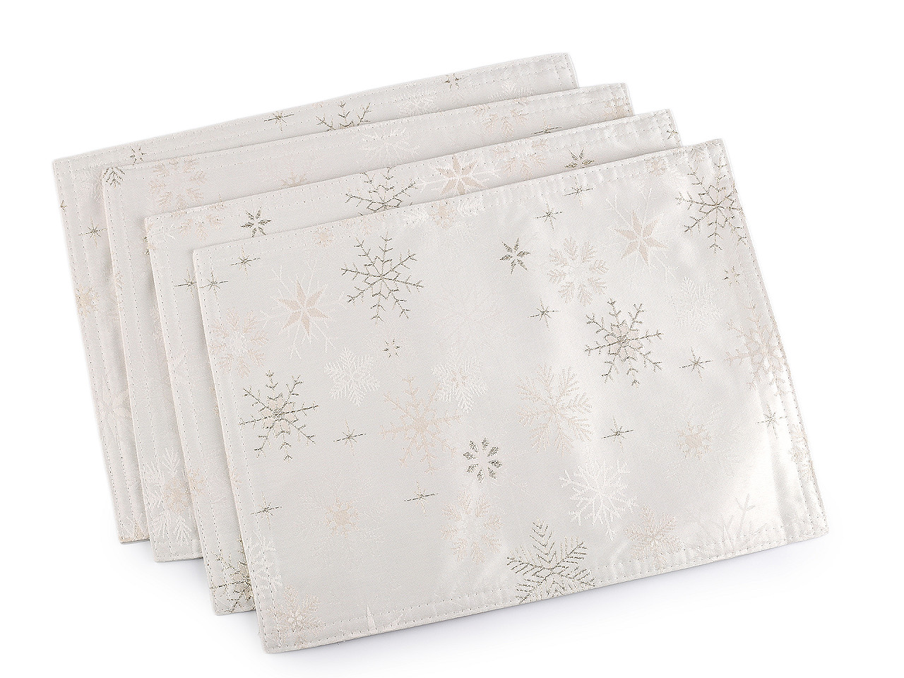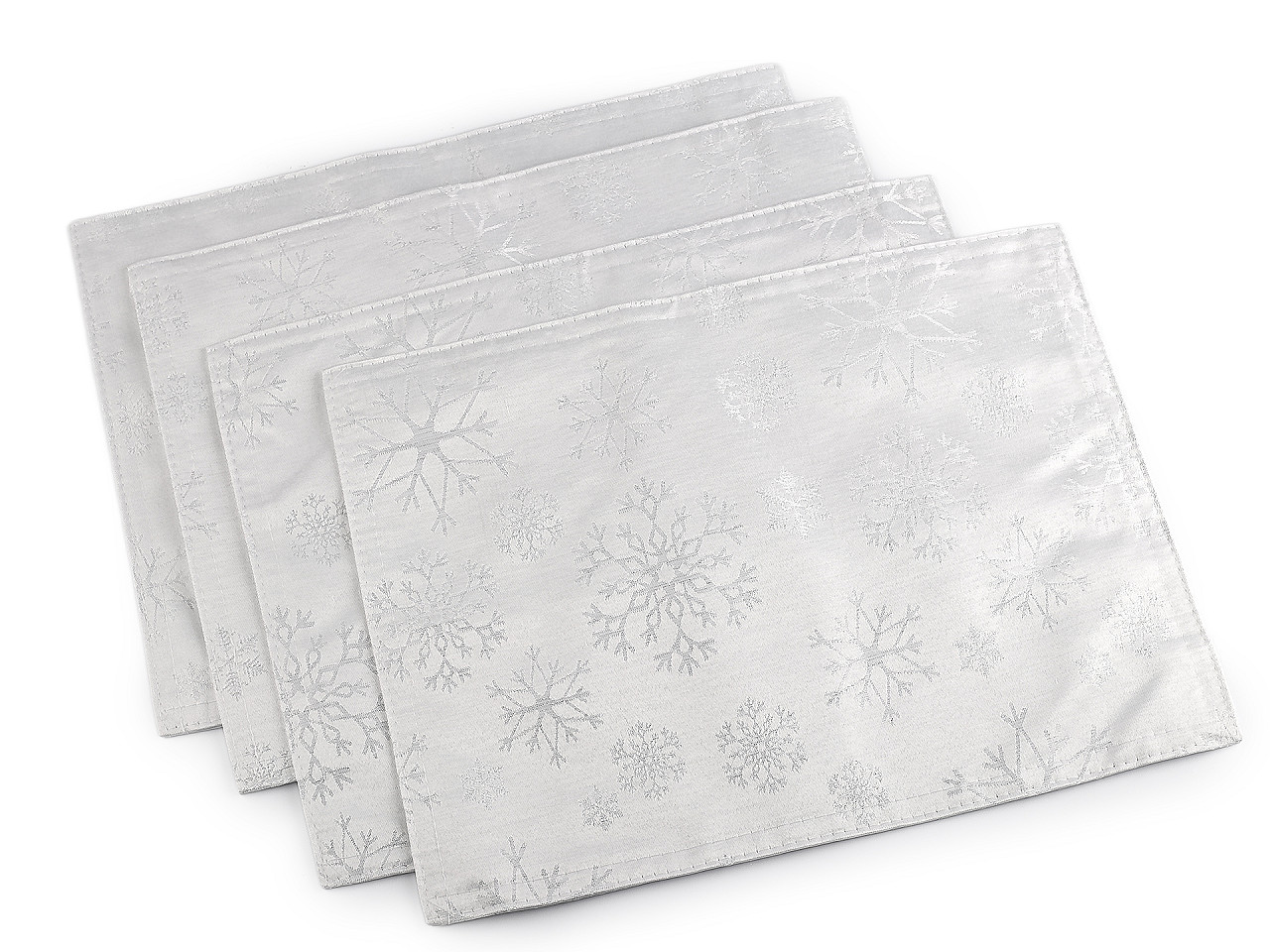 Štýlové vianočné prestieranie je ozdobené motívom trblietavých snehových vločiek . Slávnostne doladí vašu domácnosť, hodí sa do tradičného aj moderného štýlu interiéru . Je pevné, obojstranné, z dvoch vrstiev tkaniny. Chráni stôl pred škvrnami a poškriabaním. Prestieranie je aj skvelým darčekom pre vašich blízkych, ktorí si potrpia na kvalitné a estetické doplnky do domácnosti. Prestieranie č. 1 je jemne pretkané lurexom striebornej farby. Prestieranie č. 2 má výšivku zlatou lurexovou niťou.
