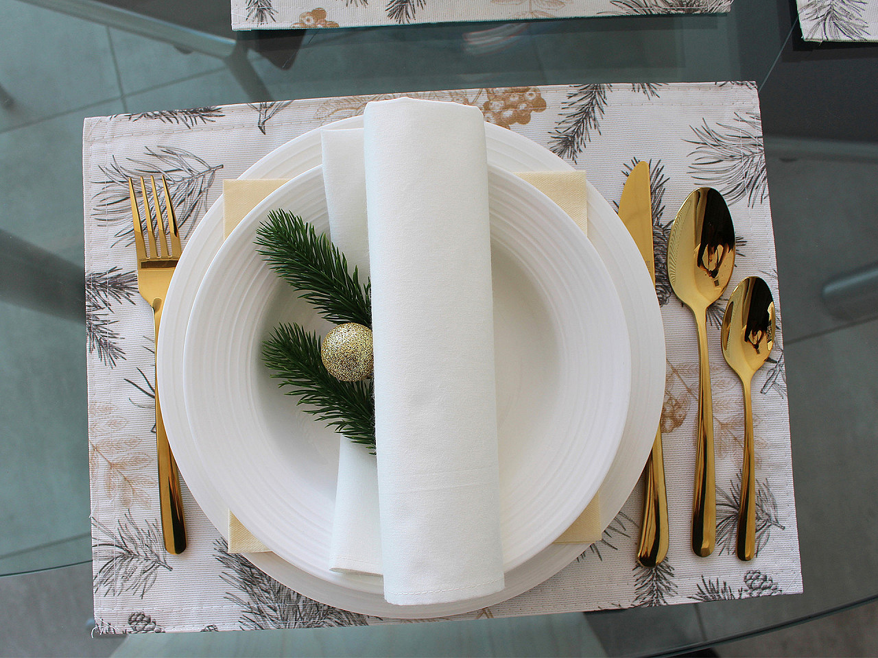Štýlové vianočné prestieranie je ozdobené motívom vetvičiek a šišiek . Vďaka pretkanému lurexu sa jemne blyští . Slávnostne doladí vašu domácnosť, hodí sa do tradičného aj moderného štýlu interiéru . Je pevné, obojstranné, z dvoch vrstiev tkaniny. Chráni stôl pred škvrnami a poškriabaním. Prestieranie je aj skvelým darčekom pre vašich blízkych, ktorí si potrpia na kvalitné a estetické doplnky do domácnosti.