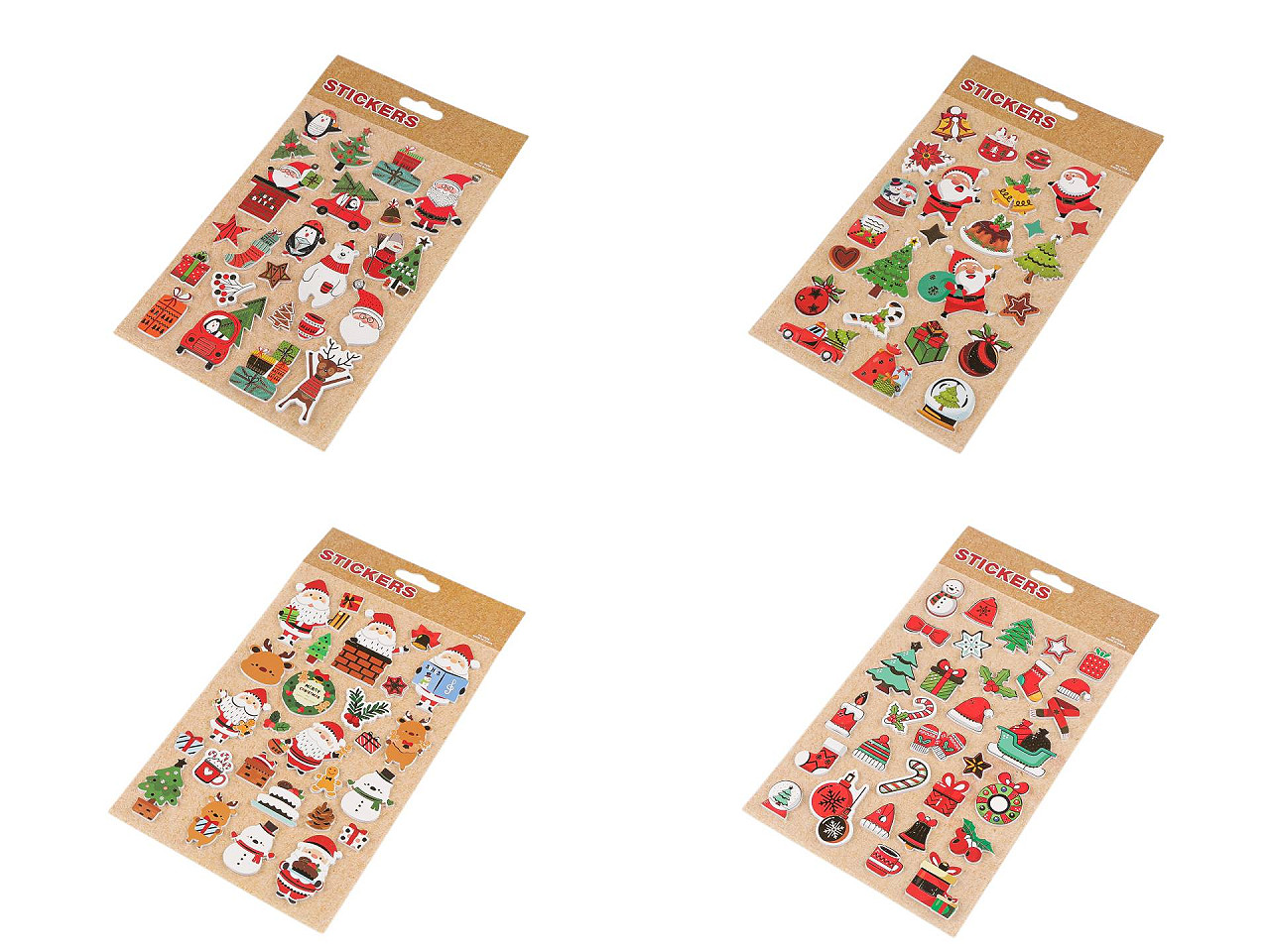 Samolepky s vianočnými motívmi majú kvalitné spracovanie. Sú plastické , so štylizovanými obrázkami. Sú obľúbené predovšetkým deťmi na zdobenie darčekov, prianí, pozvánok, krabičiek, fotoalbumov a pod. S obľubou ich využívajú aj učitelia ako motivačnú odmenu pre svojich žiakov. Samolepky sú nalepené na jednom archu transparentnej podkladovej fólie, z ktorej ich stačí sňať. Odporúčame ich lepiť na suchý, hladký a pevný povrch.