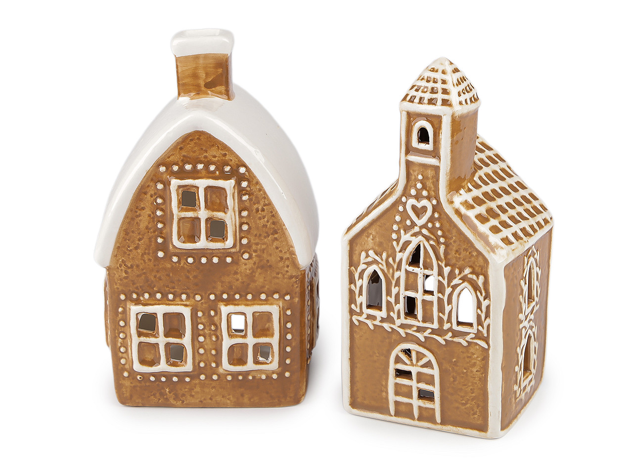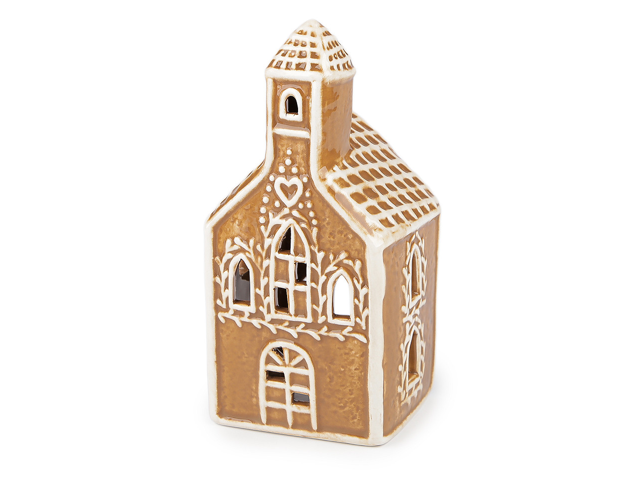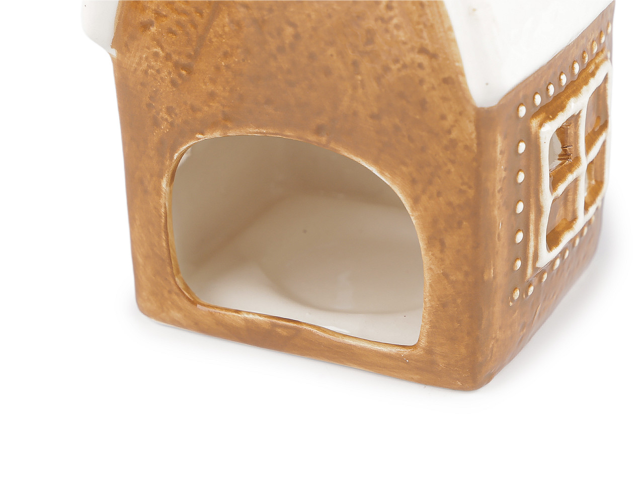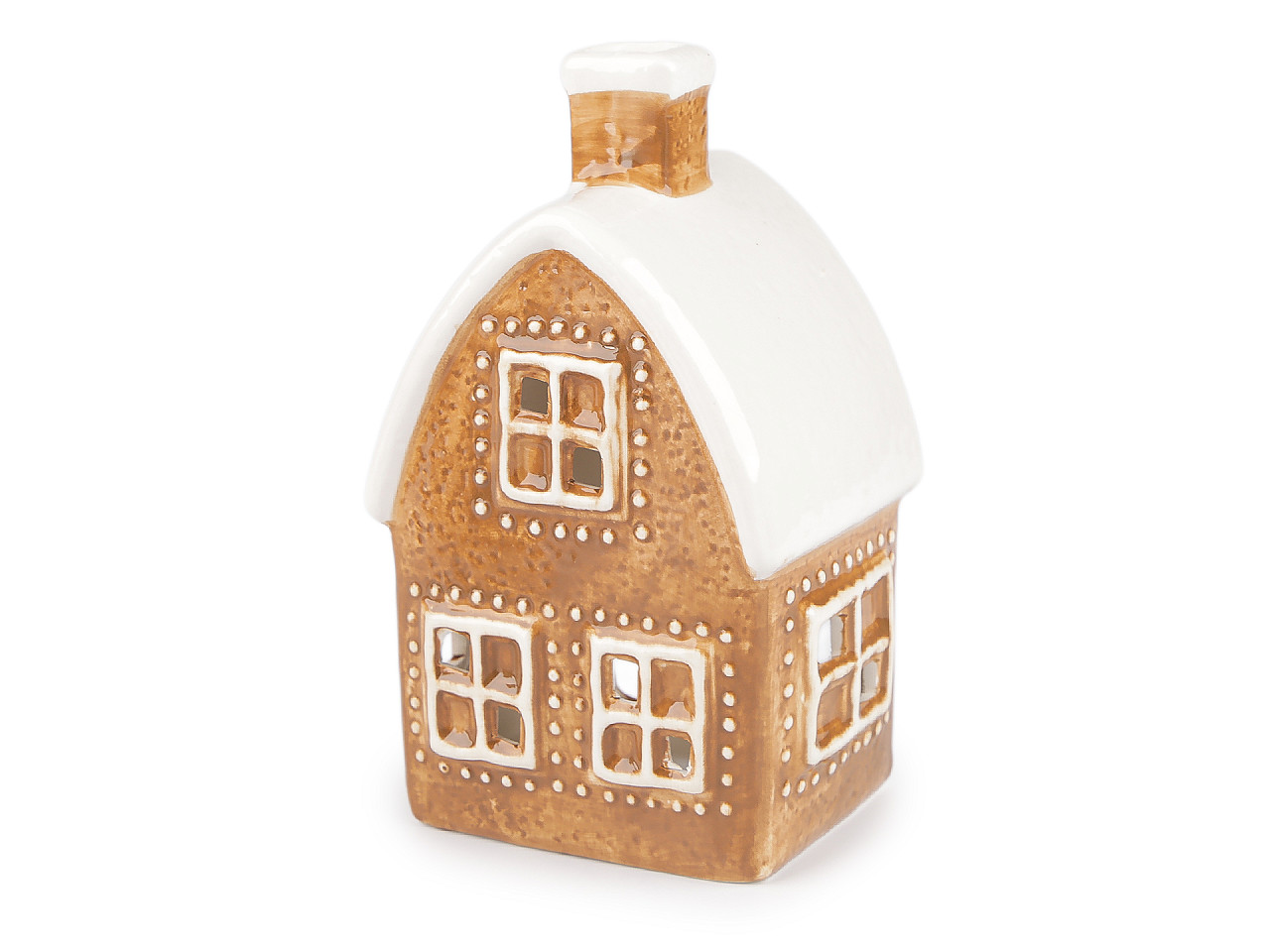 Keramický svietnik v tvare chalúpky či kostola vnesie do vášho domova príjemnú a relaxačnú atmosféru. Svojim dizajnom imituje perník . Je vhodný na klasické čajové alebo LED čajové sviečky. Perfektne vynikne ako ozdoba vianočného stola, okenného parapetu či ako súčasť sviatočného aranžmánu.
