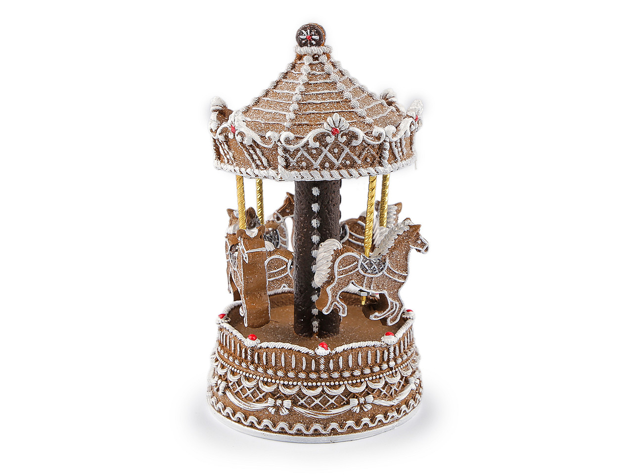 Vianočný kolotoč vyniká pôsobivými detailami a vierohodne imituje perník . Je pohyblivý, hrá vianočnú melódiu "Rolničky" a pokrývajú ho trblietavé glitre . Zútulní každý interiér a vnesie doň nádych nostalgie. Kolotoč sa spúšťa natiahnutím strojčeka, ktorý je zabudovaný v hornej časti dekorácie.