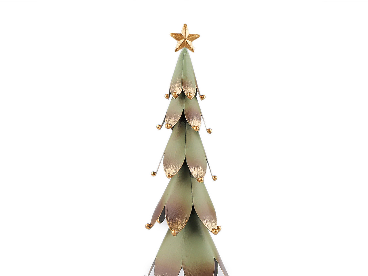 Kovový stromček je originálnou vianočnou dekoráciou, ktorá zapadne do tradičného aj moderného interiéru. Je stabilný a na povrchu má jemnú patinu . Vyniká nielen svojou jedinečnosťou, ale aj vysokou kvalitou . Vynikne tiež v kombinácii s domčekom , ktorý je v podobnom dizajne.