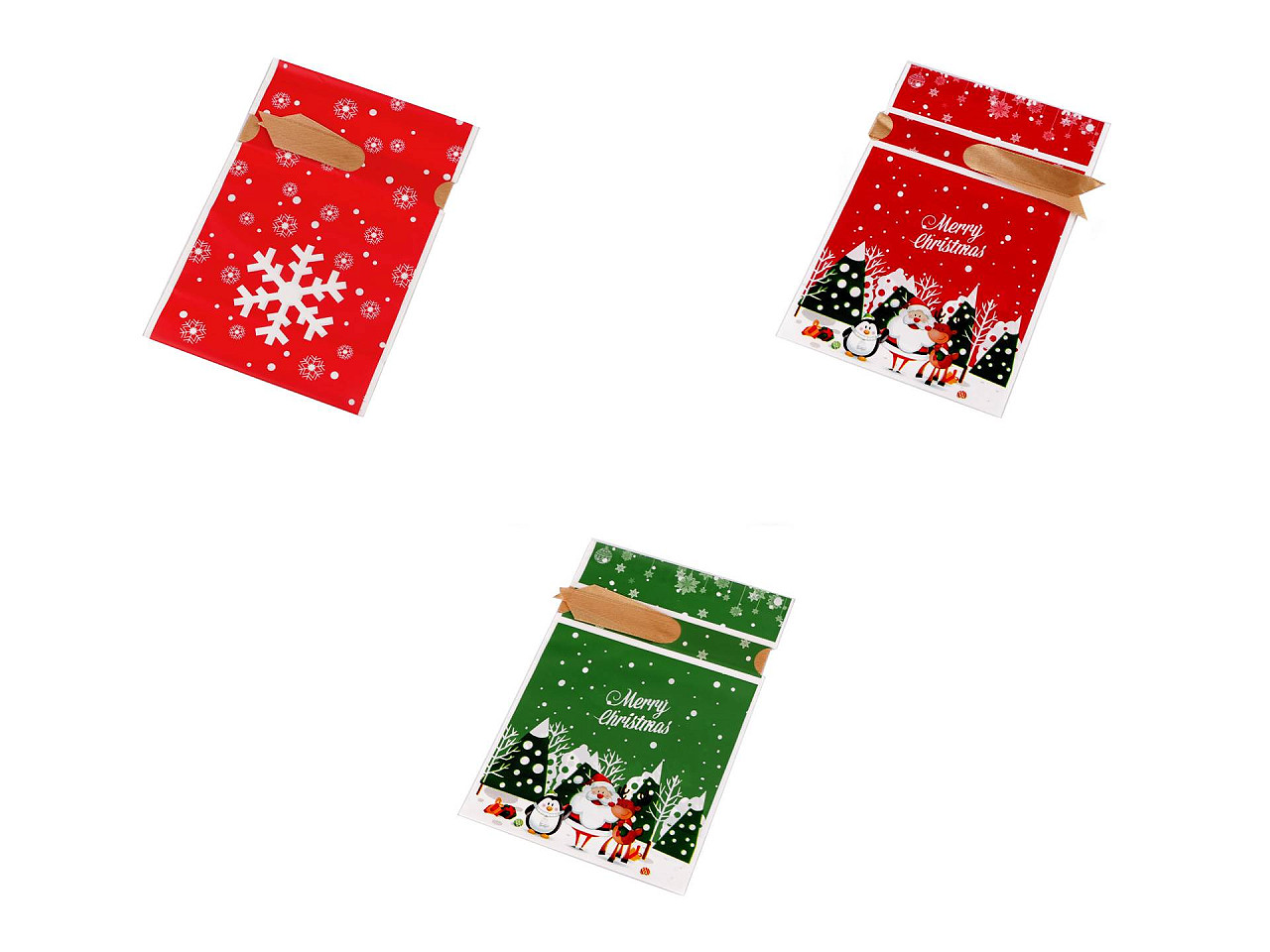 Sťahovacie vrecká s vianočnými motívmi oceníte na na darčekové balenie rôznych balených pochutín, ale tiež napríklad kozmetiky, sviečok a iných maličkostí. Sťahujú sa pomocou saténovej stuhy . Vrecká sú matné, zdobené potlačou z oboch strán. Majú rozšírené dno. Výška vrecka po stuhu je 12 cm.