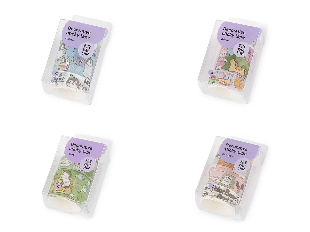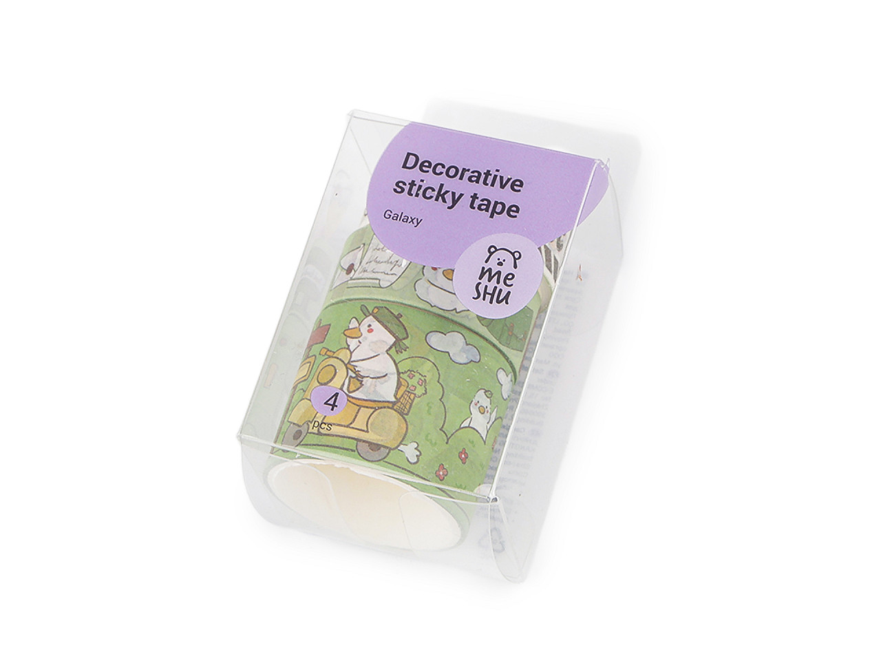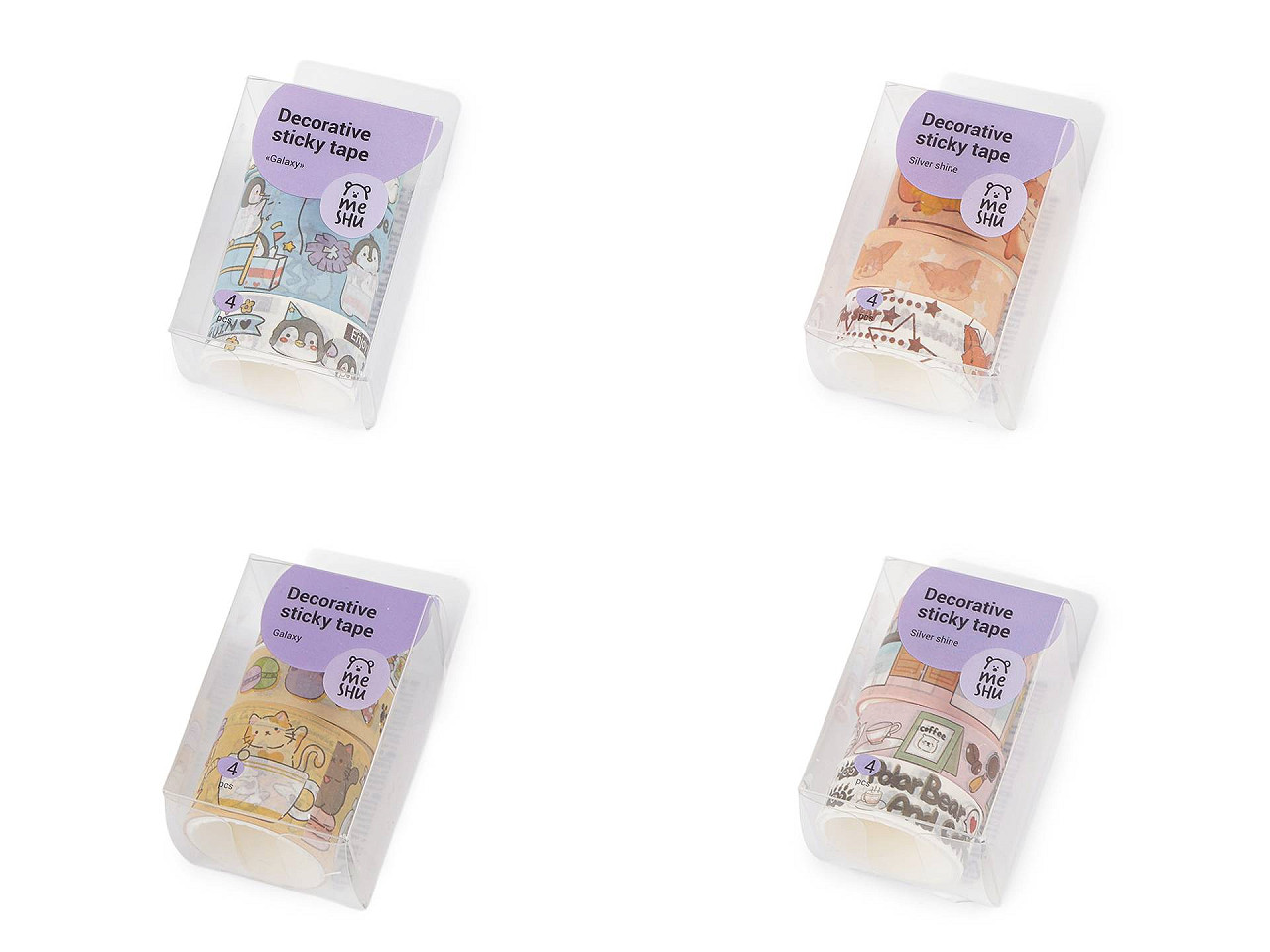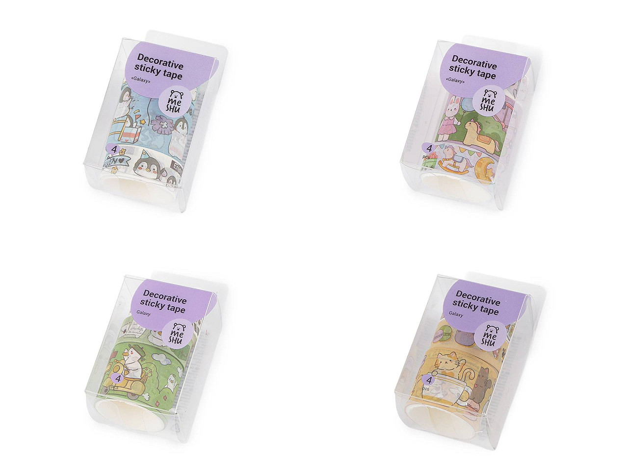 Sada farebných washi lepiacich pásiek , ktoré môžete lepiť na hladké povrchy ako je drevo, plast, papier, sklo, atď. je ozdobená detskými motívmi . Je ideálna na dekorovanie diárov, balenie darčekov, scrapbooking alebo iné kreatívne projekty. Výhodou pásky je, že je z papiera a môžete ju ľahko odtrhnúť. Vďaka samolepiacej vrstve je veľmi ľahko použiteľná a nezanecháva stopy po odstránení. Krabička obsahuje 3 ks pásiek , každý kotúčik obsahuje cca 1,8 m pásky. Dve pásky sú široké 15 mm, jedna je široká 30 mm. Mix všetkých pásiek je zabalený v transparentnej krabičke , ktorá má rozmery 4,5 x 4,5 x 8,5 cm.