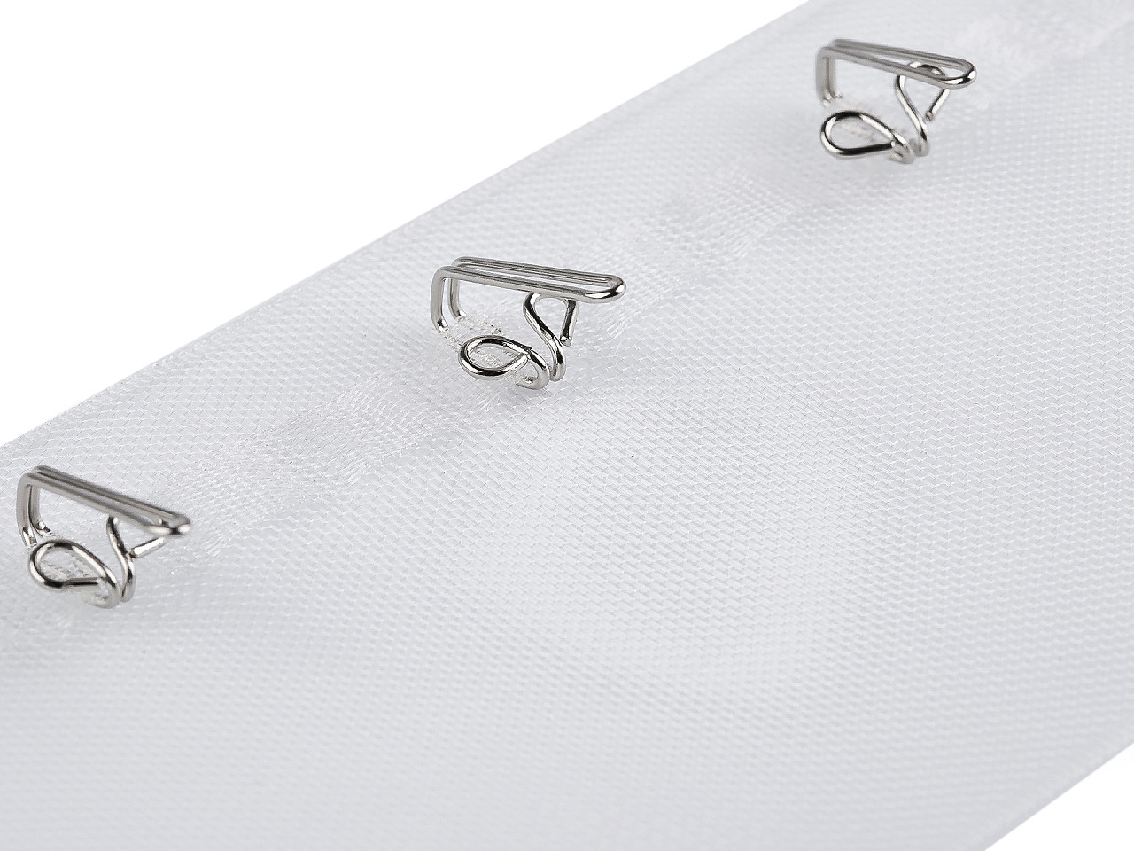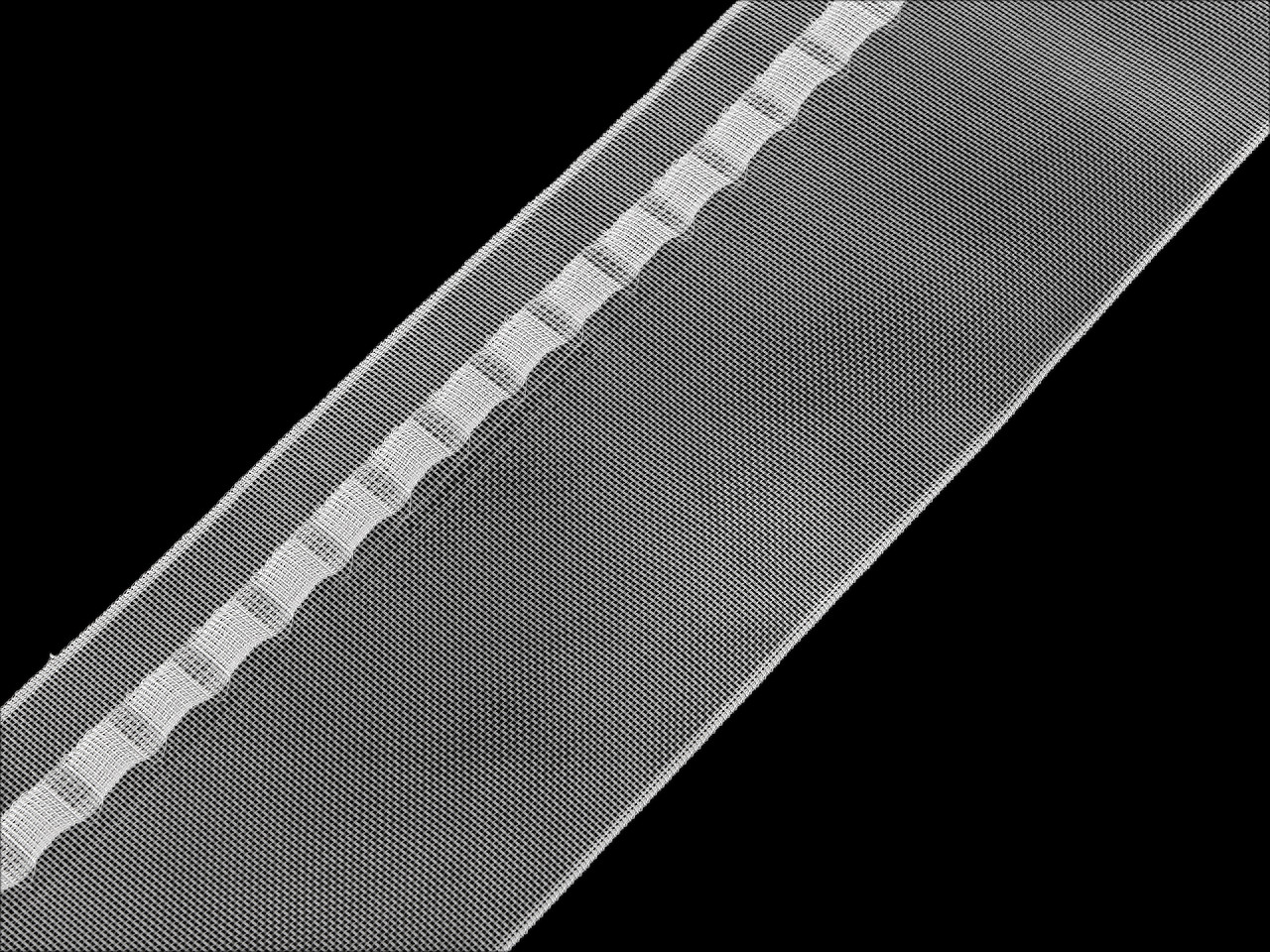 Záclonovka má pravidelné pútka na háčiky . Vďaka nim je inštalácia jednoduchá a rýchla. Rozostupy medzi pútkami sú 5 mm. Na 1 m záclonovky je 63 pútok.