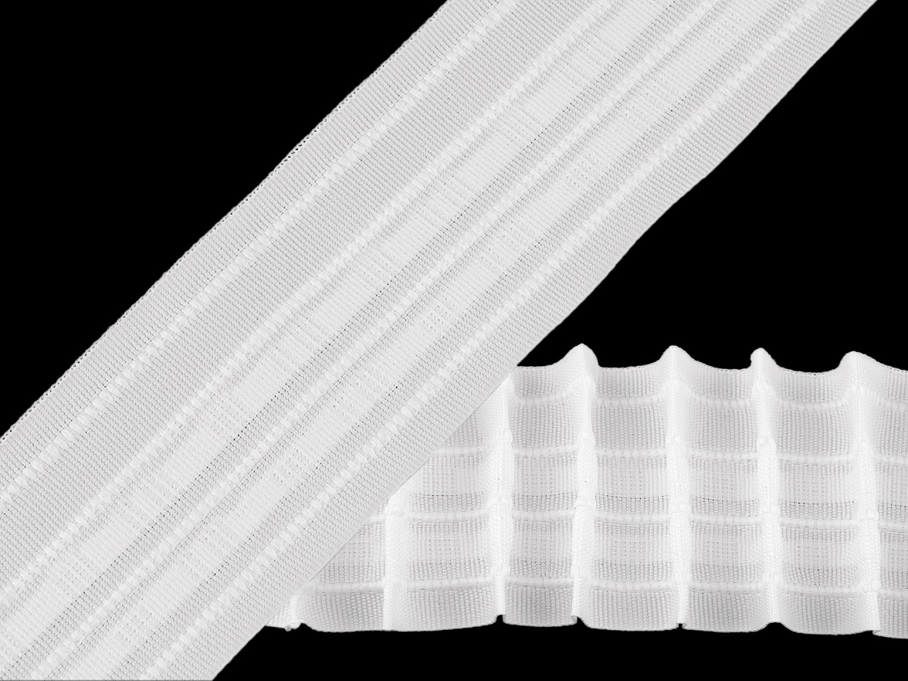 Záclonovka s ceruzkovým riasením vytvorí hladké a pravidelné záhyby na záclonách a závesoch. Zo zadnej strany sú 4 šnúrky, z ktorých po zatiahnutí vzniknú pútka na zavesenie. Odporúčané riasenie je 1:2 - na 1 m záclony po nariasení je potrebné použiť 2 m záclony pred nariasením a rovnaký pomer stuhy.