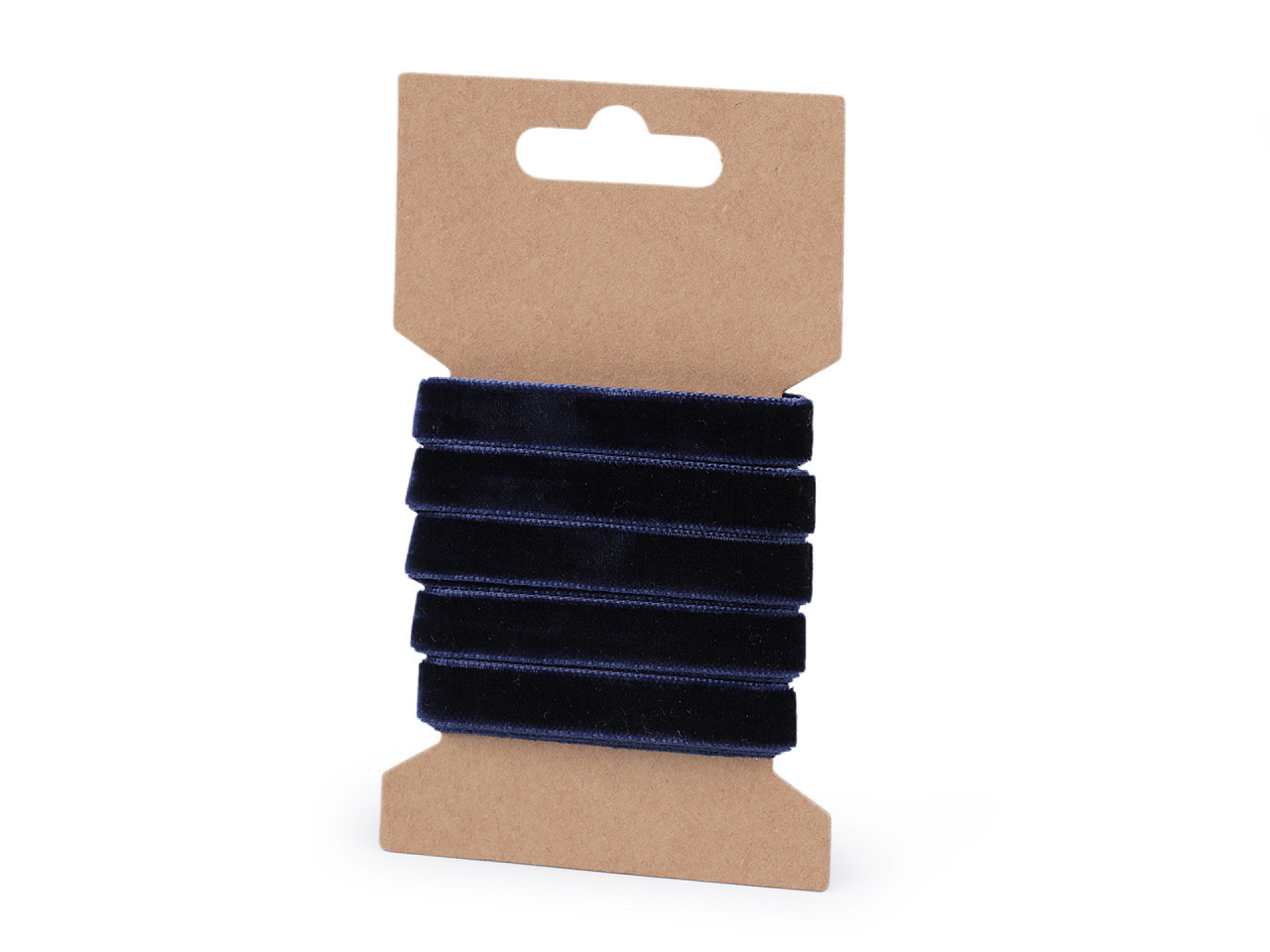 Klasická zamatová stuha je vyrobená z príjemného mäkkého materiálu. Použitie: Stuhu môžete našiť na ľubovoľné oblečenie. Hodí sa na našitie na slávnostné odevy aj na obyčajné mikiny. Využijete ju i na ozdobu karnevalových kostýmov alebo krojov. Je pevná, je vhodná ako šnurovanie. Sametka sa používa na výrobu bižutérie, pretože sa s ňou veľmi dobre pracuje napr. pri našívaní korálikov. Návrhári ju používajú na tzv. obojkové náhrdelníky. Môžete ju použiť tiež na rôzne dekorovania. V balení 3 m je stuha navinutá na malej papierovej karte. V balení 30 m je stuha navinutá na veľkej papierovej karte. Balenie 40 m dodávame ako 2 karty po 20 m. Stuha č. 6 - modrá tmavá má šírku 9 mm. Sametka na kartičke môže mať otlaky od navinovacej karty. Prípadné prežehlenie je nutné vykonať z rubovej strany.
