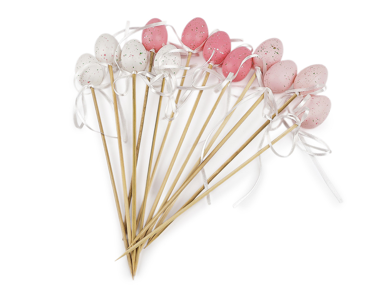 Veľkonočný zápich v tvare vajíčka kombinuje tradičnú symboliku Veľkej Noci s moderným dizajnom. Je ideálny na ozdobenie kvetinových aranžmánov, kvetináčov, veľkonočných vencov alebo ako súčasť sviatočného stolovania.