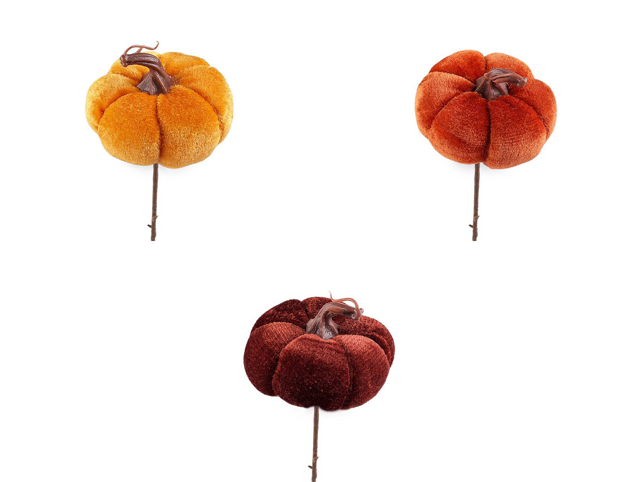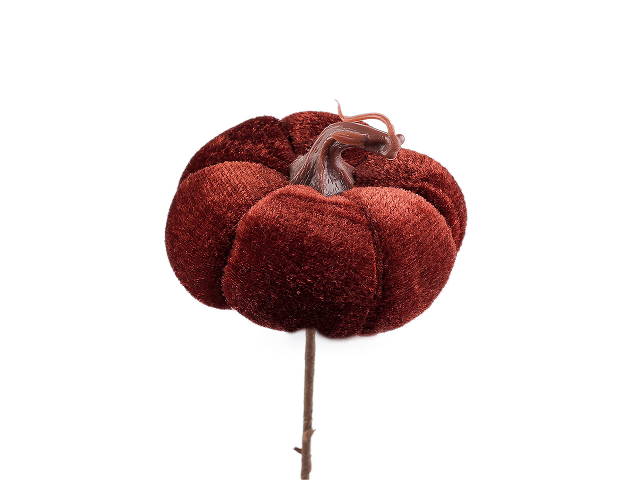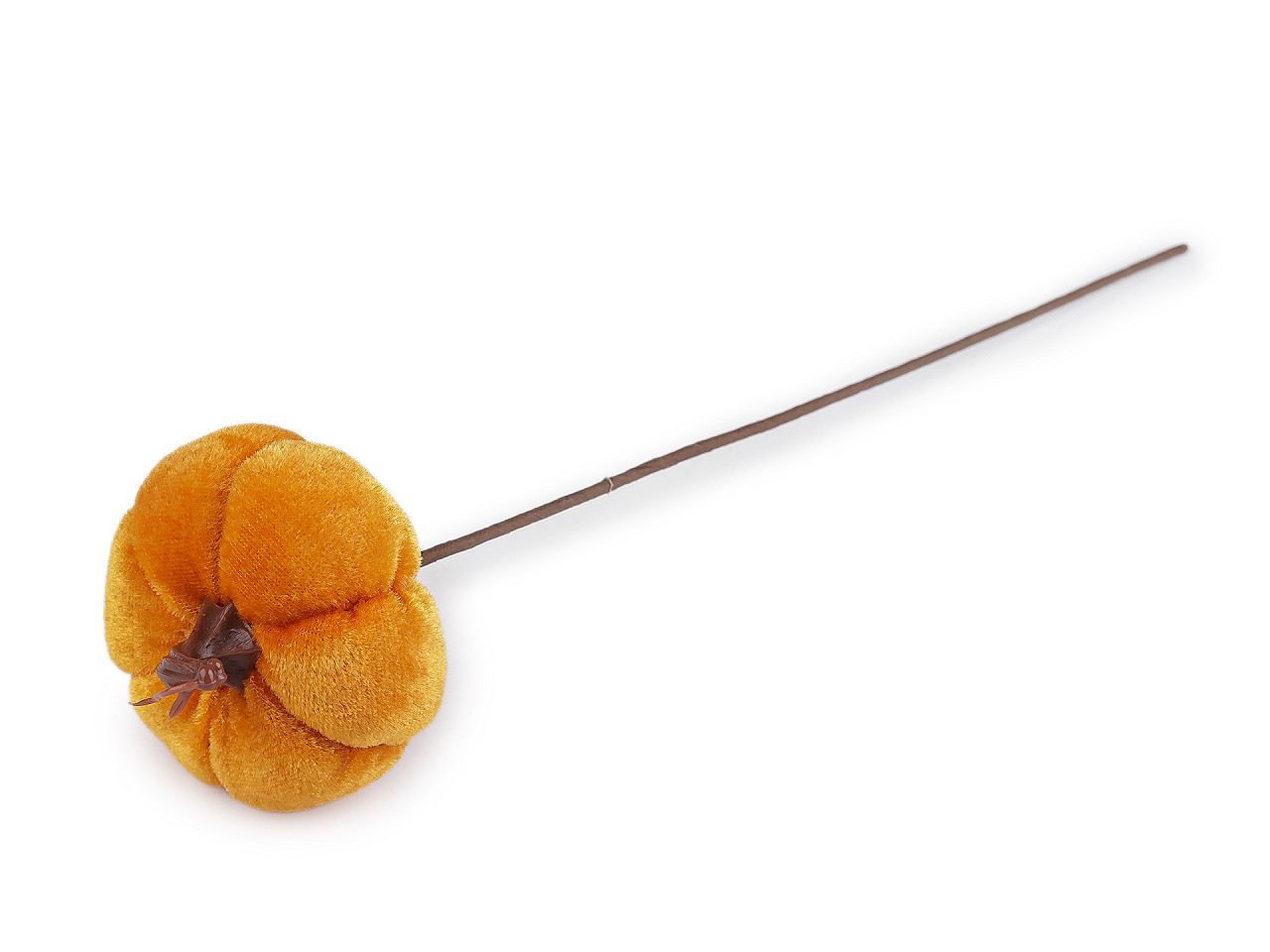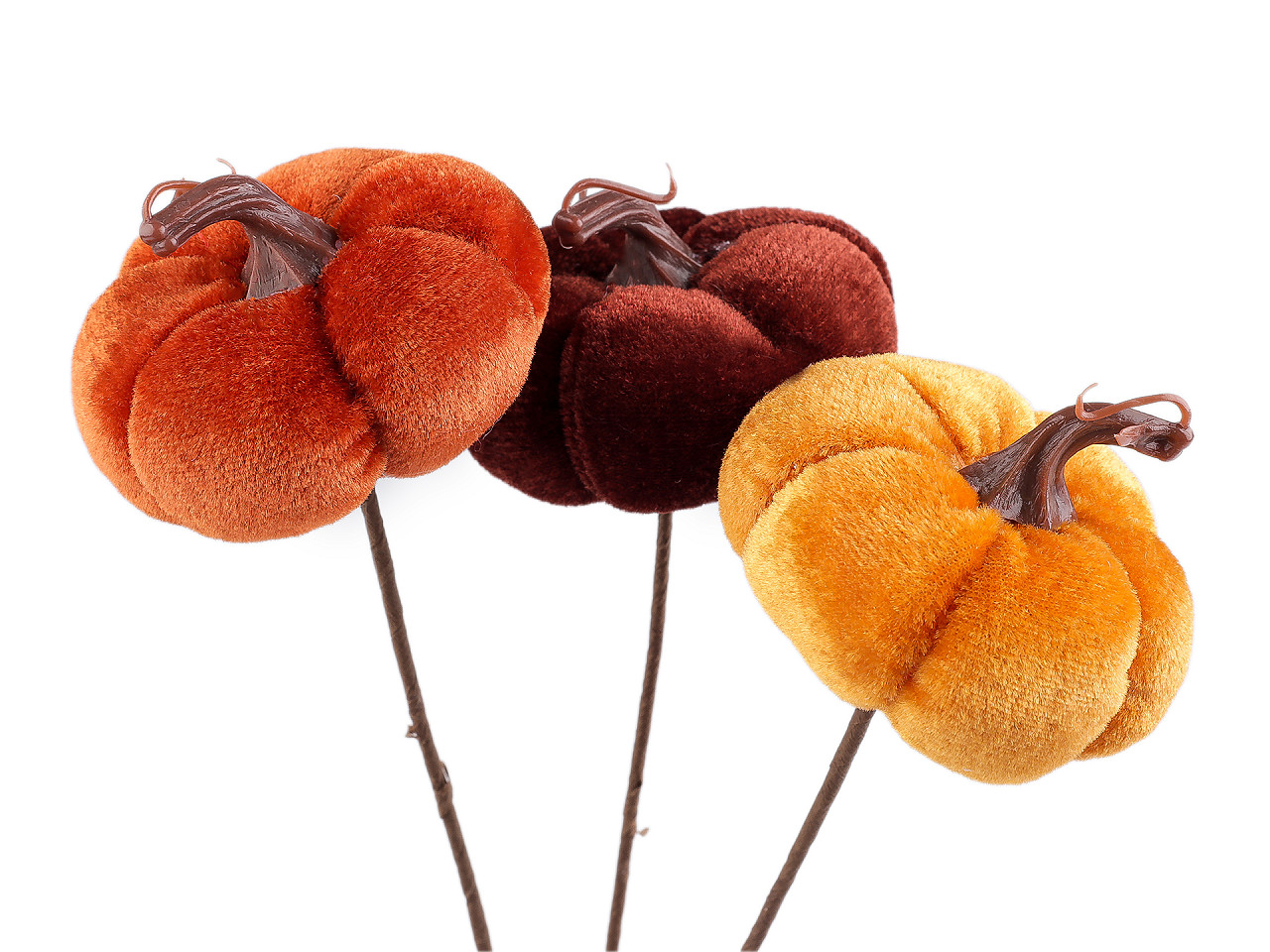 Dekoračná zamatová tekvica vynikne v jesenných väzbách, kvetináčoch, aj na vencoch. Zamatový povrch jej dodáva luxusný vzhľad. Tekvica je na dlhej pevnej stonke, ktorá umožňuje jej ľahké a stabilné umiestnenie.