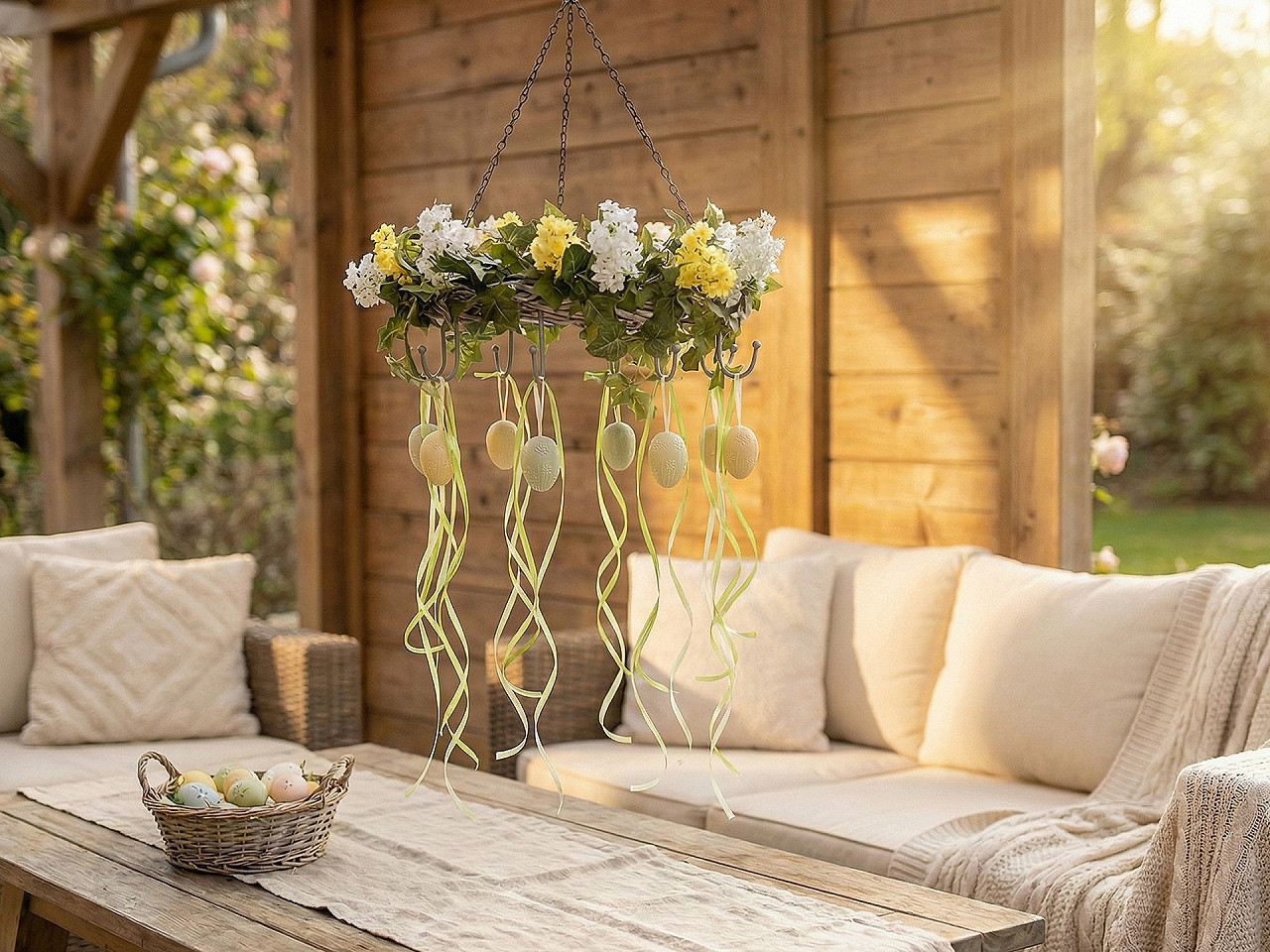 Závesný prútený veniec v rustikálnom štýle využijete na celoročné aranžovanie. Vyniknú na ňom vianočné, veľkonočné, jesenné aj letné dekorácie. Po stranách má 8 háčikov , na ktoré môžete zavesiť sušené kvety, banky, imelo, vetvičky a rôzne dekorácie. Dĺžka od závesného háčika k vencu je cca 38 cm. Dĺžka háčikov, ktoré sú po obvode venca je cca 7,5 cm.