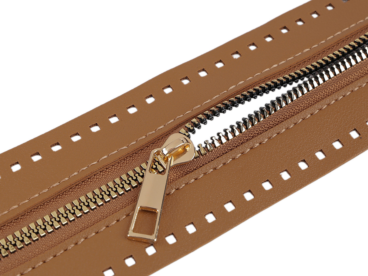 Zip vsadený do podkladu z eko kože využijete na kabelky, tašky, puzdrá aj batohy. Je vhodný na šité, pletené aj háčkované výrobky. Môžete ho použiť ako hlavné zapínanie alebo na vnútorné a bočné vrecká. Rozmery štvorčekov sú 3 x 3 mm. Dĺžka zipsu je 21,5 cm. Šírka zúbkov je 6 mm.